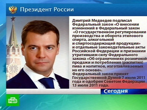 Президент России подписал федеральный закон о госрегулировании производства и оборота алкоголя, в том числе пива, которое теперь приравнивается к алкоголю и не будет продаваться в ларьках и палатках. Как сообщает