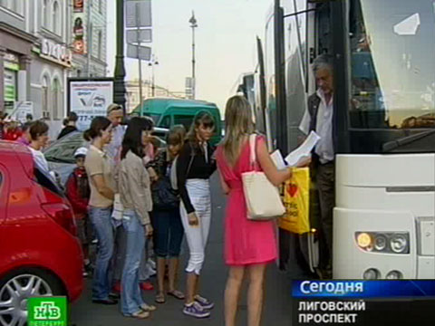 Половина седьмого утра, Лиговский проспект рядом с гостиницей «Октябрьская» — импровизированный автовокзал. Здесь несколько десятков больших и маленьких автобусов, люди со списками и множество тех, кто хочет уехать в Финляндию.