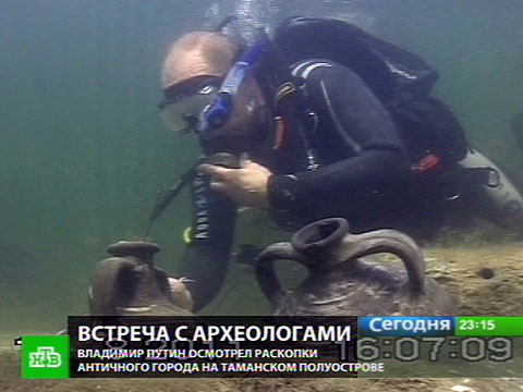 Две старинные амфоры нашел премьер-министр России, погрузившись с аквалангом на дно Таманского залива. На Таманском полуострове планируется создать заповедник и приглашать туристов.