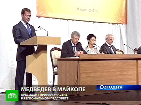 Сегодня Дмитрий Медведев погрузился в проблемы образования. Он участвовал в региональном педсовете Республики Адыгея. В числе прочего говорили о пресловутом ЕГЭ, о повышении статуса учителей и о толерантности — для Кавказа это особенно больной вопрос. Перед совещанием Медведев посетил места, где указанное обычно и формируется или не формируется — детсад и школу. Из Майкопа передает корреспондент НТВ Сергей Пикулин.