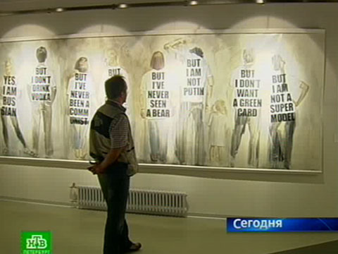 По залам бродят длинноногие девушки. Они пришли посмотреть на длинноногих девушек. Творческая группа КГБ, вспоминая все эти мозаичные панно, которые висели в администрациях, в школах, создала свою монументальную работу — о светлом будущем России.