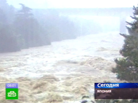 Первый удар тайфуна «Роке» пришелся на побережье острова Хонсю. Там идут ливни, бушуют наводнения.