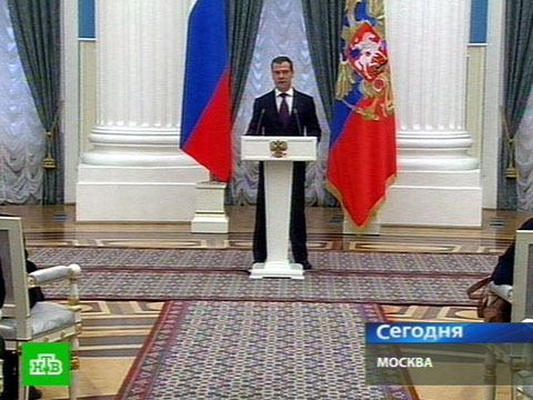 Дмитрий Медведев, президент РФ: «Нет смысла представлять всех, кто сегодня здесь собрался. Ваши фамилии и вы лично знакомы, действительно, огромному количеству наших граждан. В любом случае я хотел бы вас сердечно поздравить и с государственными наградами, и с наступающим государственным праздником — Днем народного единства, который мы будем отмечать в конце недели.