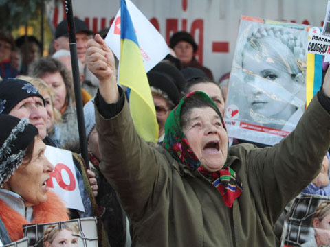 Сегодня утром в суд пытались прорваться депутаты Верховной рады, сторонники Юлии Тимошенко. По закону, они имеют право присутствовать на всех, даже закрытых судебных заседаниях. Этим правом они активно пользуются и вот сегодня пытались пройти в суд. Встретил их там ОМОН, состоящий из бойцов «Беркута». Началось противостояние. Депутатам пришлось отступить, в зал суда они не смогли попасть. Для них, как и для журналистов, была организована прямая трансляция из зала заседания в одном из
