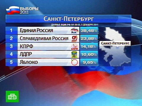 Как выяснил корреспондент НТВ Николай Булкин, в Петербурге расклад сил немного иной. По предварительным данным, второе после «Единой России» место заняла партия Сергея Миронова. Это можно объяснить тем, что именно эта партия последние годы была таким наиболее последовательным оппонентом городских властей и «Единой России».