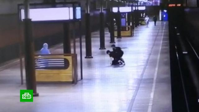 В Москве полицейские задержали дебошира, который напал на пассажира в метро.