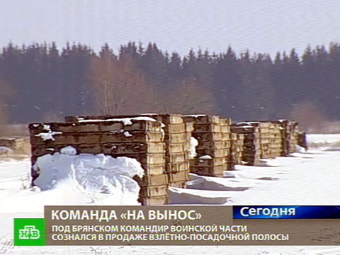 Сегодня в Брянской области допрашивали бывшего сотрудника Минобороны, который подозревается в том, что за взятку отдал бизнесменам военный объект. Чиновник сознался, что, получив миллион рублей, позволил разобрать и увезти с аэродрома Климова покрытие