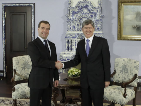 Президент России Дмитрий Медведев встретился со своим киргизским коллегой Алмазбеком Атамбаевым, который впервые в качестве президента прибыл в Москву с рабочим визитом. На переговорах обсуждали сложную обстановку на Ближнем Востоке и ее влияние на ситуацию в Центральной Азии.