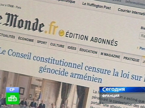 Конституционный совет Франции отклонил законопроект, который вводил уголовную ответственность за отрицание факта геноцида армян в Османской империи. Документ был подготовлен правительством республики, горячо поддержан президентом и одобрен обеими палатами парламента.