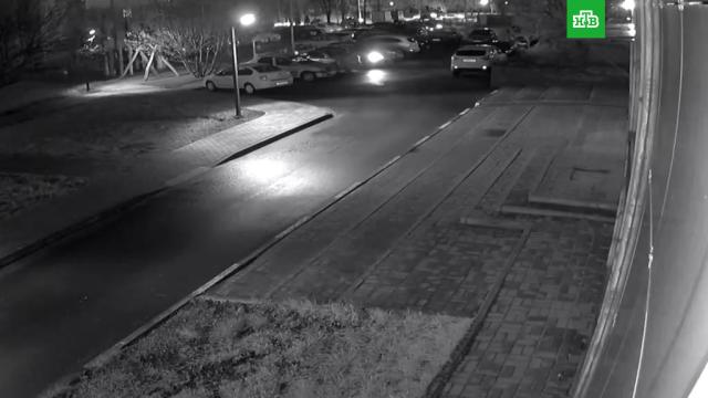 Запись сделана камерой наблюдения. На записи сначала слышен громкий звук. Затем на дальнем плане виден взрыв.