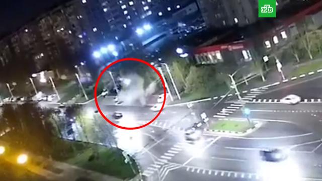 В соцсетях появилось видео двух взрывов, которые прогремели в Белгороде вечером 20 апреля из-за нештатного схода авиационного боеприпаса с самолета ВКС России Су-34 .