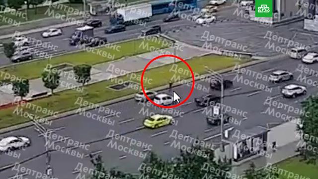Инцидент попал на камеры видеонаблюдения. На записи видно, как пешеход пытается перейти многополосную дорогу, но оказывается под колесами первой же машины.