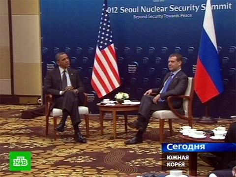 Дмитрий Медведев сегодня приехал в Сеул и первым делом встретился с Бараком Обамой. Вероятно, президент США поделился своими планами давления на Пхеньян.