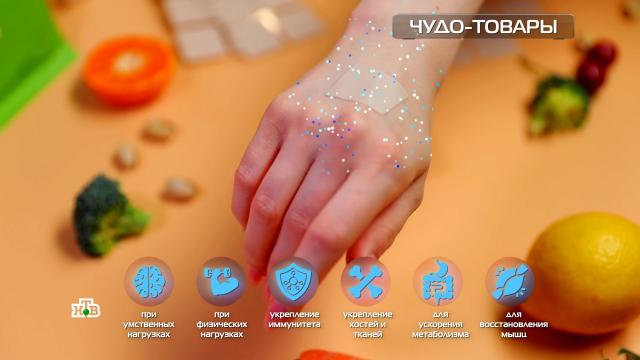 Для тех, кто не хочет пить таблетки, но переживает за недостаток витаминов, есть современный и удобный выход. Если верить рекламе, пластыри (по-модному патчи) для российского бренда произвели в США. Они содержат мультивитаминный комплекс из 15 веществ. Достаточно наклеить их на кожу и вся польза перейдет в кровь, что поможет при высоких умственных и физических нагрузках, укрепит иммунитет, кости и ткани, а также ускорит метаболизм и восстановит мышцы.