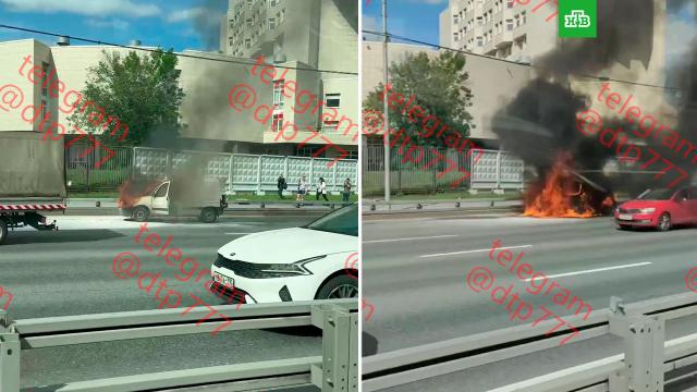 На Третьем транспортном кольце горит автомобиль. Есть ли пострадавшие, неизвестно.