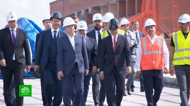 Затем, пока лишь на ногах, но высокая комиссия с высоты уже успела оценить масштаб работ на Витебской развязке. Одно из самых сложных мест — участок трассы над Московским проспектом.