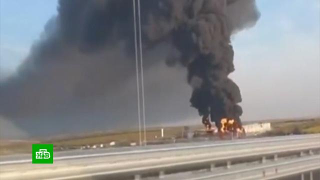 В Сети появились кадры мощного пожара на ростовской нефтебазе после атаки БПЛА.