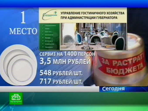 Но главный приз — «Золотой ершик — 2012» достался Управлению гостиничного хозяйства при администрации губернатора. Учреждение порадовало себя сервизом на 1400 персон. Стоимость посуды потянула больше, чем на 3,5 миллиона рублей. Изготовленные в Германии круглые тарелки закупались по цене 548 рублей за штуку, а незаменимые в хозяйстве средние блюда уже по 717 рублей, уточняет НТВ.