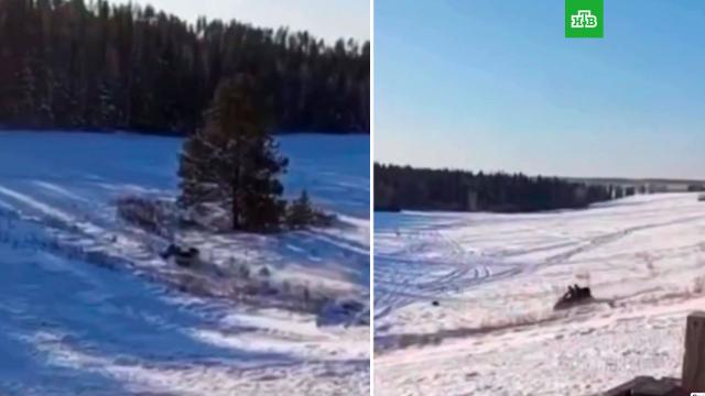 В Иркутской области двое детей опрокинулись на снегоходе, один из них погиб на месте.