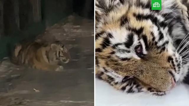 Детеныша нашли жители поселка Ольга в Приморье. Он лежал прямо посреди дороги, матери рядом не было. Приехавшие специалисты охотнадзора убедились, что тигренок — сирота.