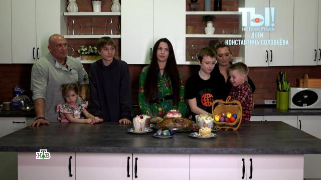 Дружно и весело семья Константина Соловьёва готовится к Пасхе. На кухне командует парадом его жена Валентина, а помогает ей бывшая супруга Соловьёва, актриса Евгения Ахременко. Сыновья Константина Даня и Тимофей и дети Валентины Андрей и Вероника увлеченно красят яйца, пекут куличи на сливках. А ведь актер долгие 10 лет не общался с детьми, разве что отправлял поздравления с днем рождения.