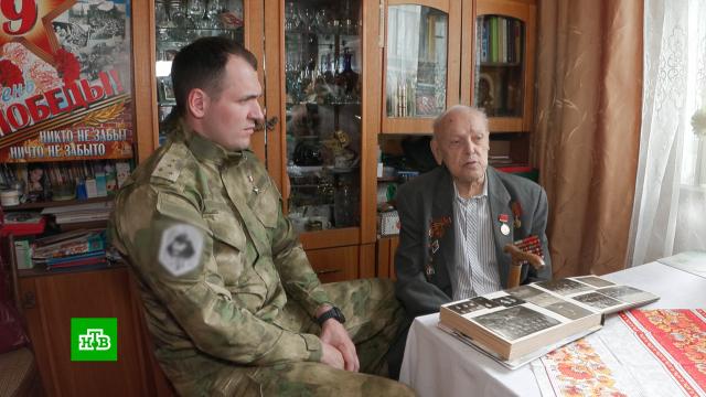 Ветерана специальной военной операции Никиту Палазника встретил ветеран Великой Отечественной Герман Андросенко в орденах и медалях.