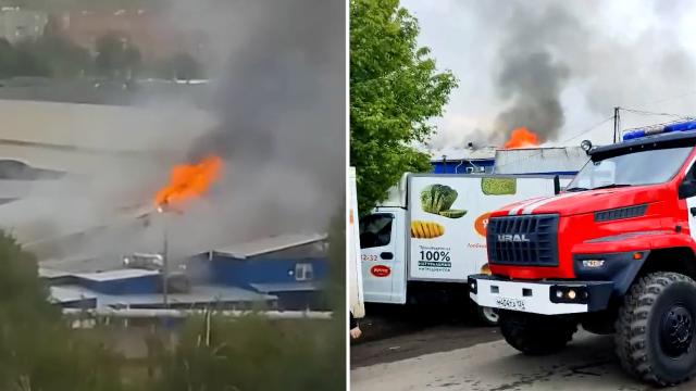 Предварительно, горит склад с резиной в поселке Новый. К месту ЧП едут спасатели. Пожару присвоили повышенный ранг сложности.