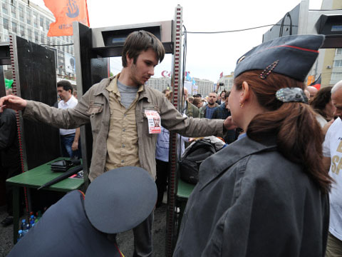 МВД называет сидячий протест провокацией и утверждает, что люди на асфальте мешают движению колонны. Как сообщают очевидцы, на Болотную уже приехал начальник столичного главка МВД Владимир Колокольцев. Приезд большого полицейского начальства не повлиял на планы Удальцова. Активист «Левого фронта» продолжает сидеть на одном месте. С порога кинозала он написал в Twitter, что по зову оппозиции на улицы вышли около 100 тысяч человек.