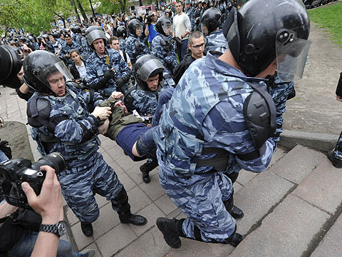 Оппозиционеры не спешат покидать улицы Москвы. От станции метро «Чистые пруды», где они собирались провести митинг несогласных с инаугурацией президента Владимира Путина, активисты прошли к