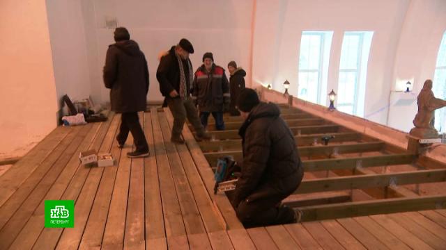По гвоздику, по досочке — так постепенно и пол выстилается. Работа идет не посменно, небыстро и небольшими группами, ведь инструменты в руках у волонтеров и простых прихожан церкви Святого Иоанна в Севастьяново, что в 30 километрах от Приозерска Ленинградской области.