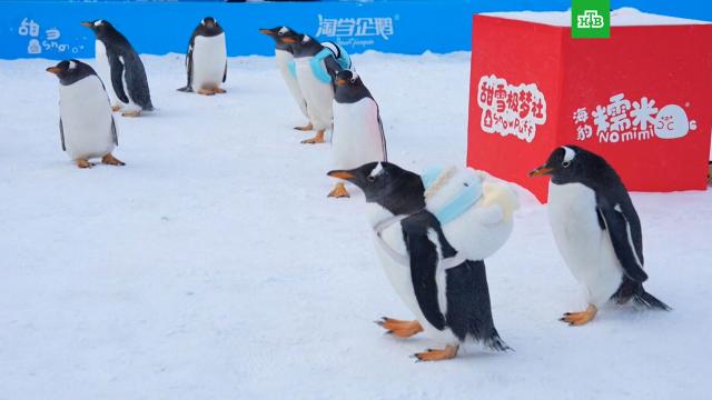 В китайском городе Харбин прошел парад пингвинов. Его участники прошествовали в бабочках и с забавными рюкзачками в сопровождении сотрудников парка Harbin Polarland. Шествие пингвинов показали все китайские СМИ.