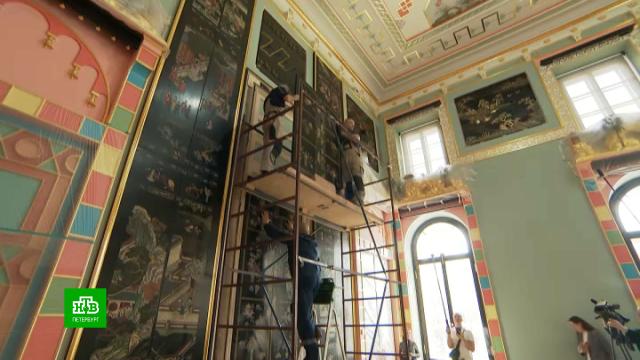 Воссоздание декоративного убранства Китайского зала — важнейшая веха международного реставрационного проекта. Уже в июне экскурсионный маршрут «Екатерина II. Личное пространство» откроют для посетителей.