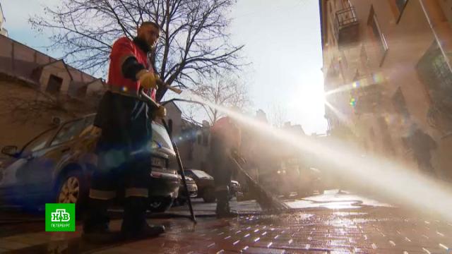 На предупреждение замгубернатора дворники ответили ударной работой. На промывку двора у пересечения Большого проспекта с Ординарной улицей потратят примерно шесть тонн воды. Но в целом по Петроградскому району территория большая, а времени мало.