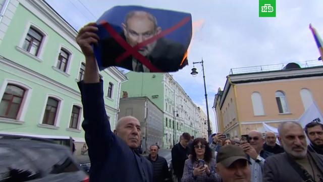 У здания армянского посольства в Москве прошла акция в поддержку Армянской апостольской церкви.