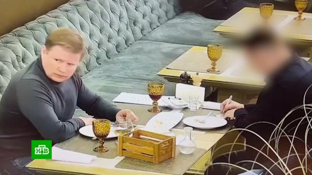 На кадрах ФСБ видно, как двое мужчин без слов ведут переговоры за столом в московском ресторане. Пока один старательно выводит на листке строки, второй сканирует пространство, словно, видит угрозу в каждом посетителе или официанте. Вскоре листки исчезают, бумажная сделка заключена, мужчины удаляются на выход. Среди написанного на бумажке в ресторане была цифра 36 млн рублей.