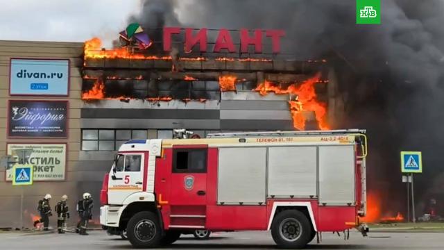 Пламя охватило несколько этажей ТЦ «Гиант» в Калининграде.