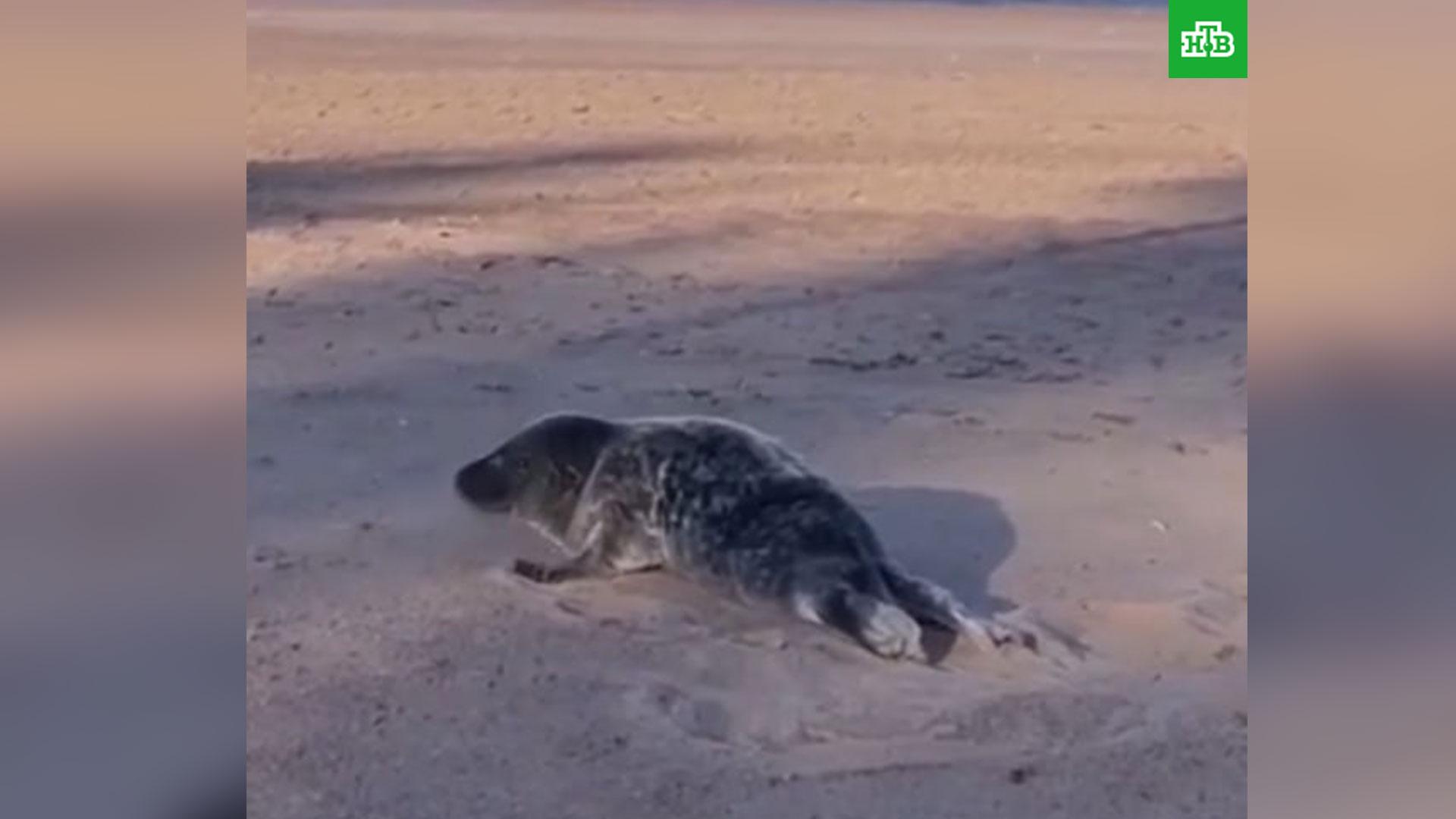В районе пляжа «Дюны» прохожие заметили тюлененка и отогнали малыша обратно в Финский залив.