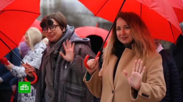 300 участников флешмоба выстроились по буквам, которые хорошо видны если не из космоса, то из окон ближайших многоэтажек. В сквере Олимпийских Чемпионов на