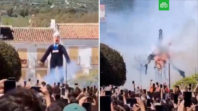 В испанском городе Эль-Бурго сожгли чучело израильского премьера Биньямина Нетаньяху, начиненное взрывчаткой. Тель-Авив обвинил Испанию в «ужасающей антисемитской ненависти».