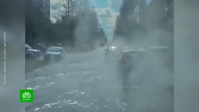 Таковы последствия прорыва трубы с горячей водой, который произошел в полдень в Приморском районе. Дефектная магистраль не выдержала температурной нагрузки.