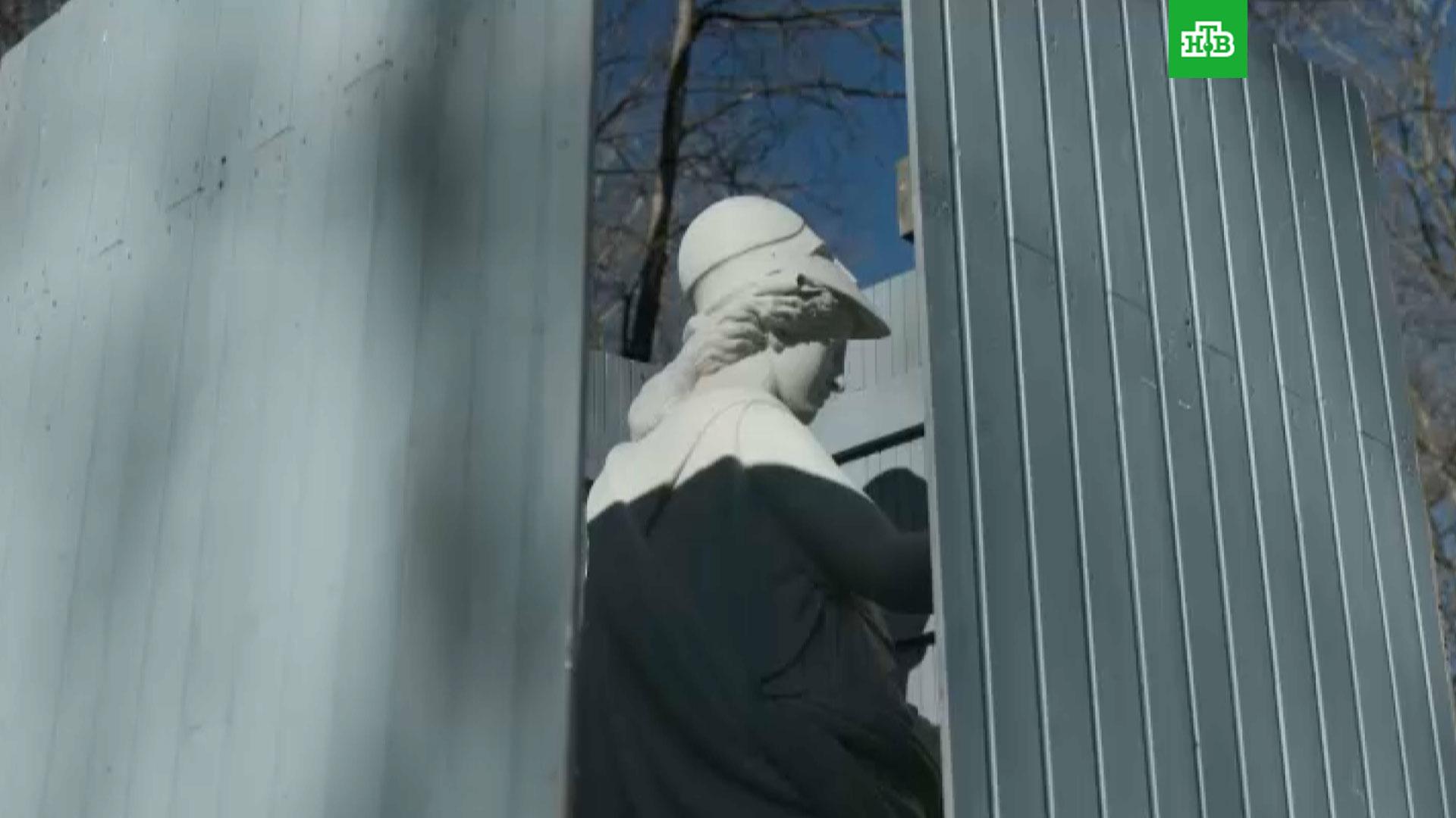 Статуи работы итальянских мастеров XVIII века на холодное время года закрывают, чтобы защитить от влаги и перепадов температур. Теперь Амазонка, Сатир, Марс, Афина, Флора и другие мифологические персонажи ждут встречи с гостями музея.