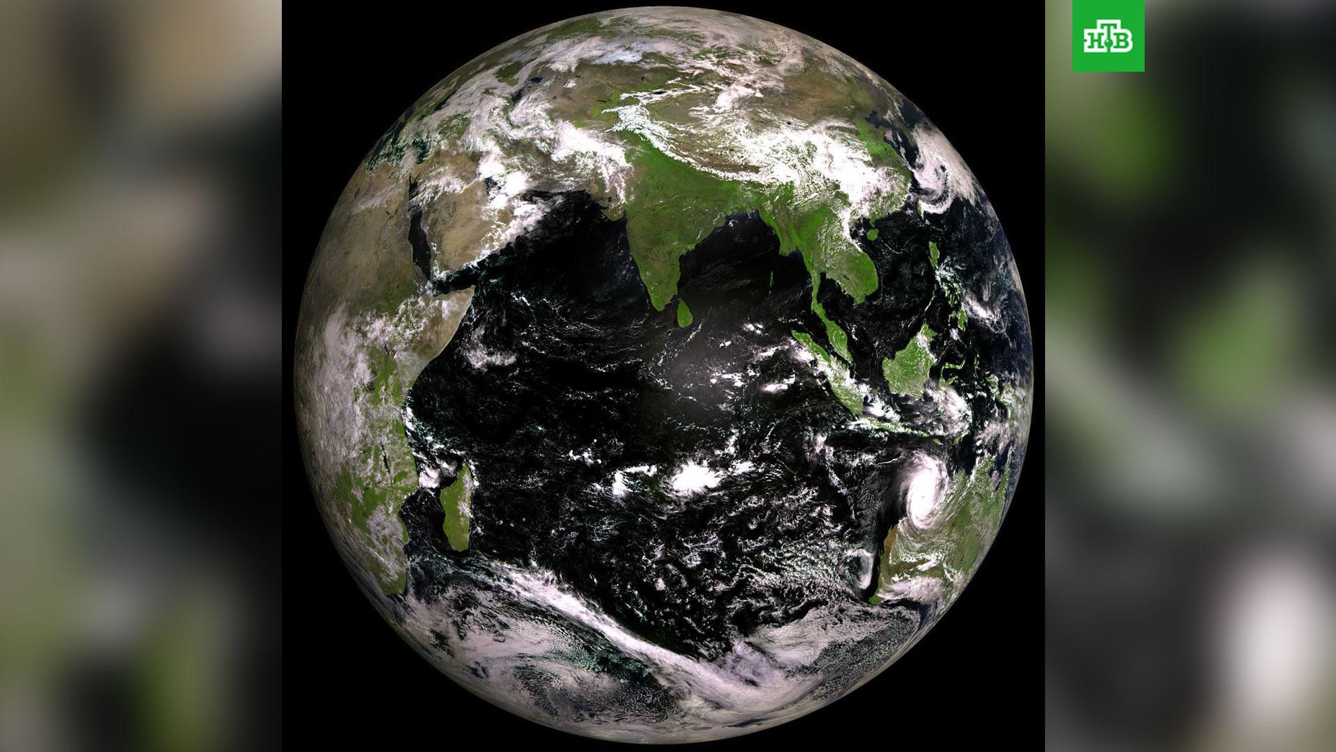 В честь Дня Земли госкорпорация «Роскосмос» опубликовала снимок нашей планеты, на котором видны океаны и континенты.