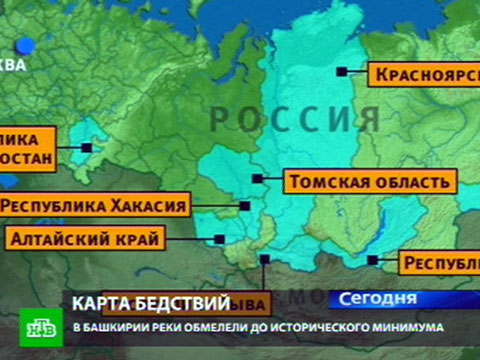 А вот Западная Сибирь, наоборот, не может дождаться осадков. В Алтайском крае введен режим чрезвычайной ситуации в связи с продолжительной засухой, ущерб от которой превысил уже три миллиарда рублей. В Красноярском крае и в Томской области, где также объявлен режим ЧС, а также в Хакасии и Туве горят леса.