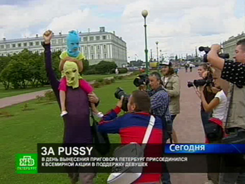 Митинг в поддержку Pussy Riot в Петербурге закончился мирно, однако плакаты, картонные маски и мегафоны сочувствующие панк-девушкам решили не убирать надолго.
