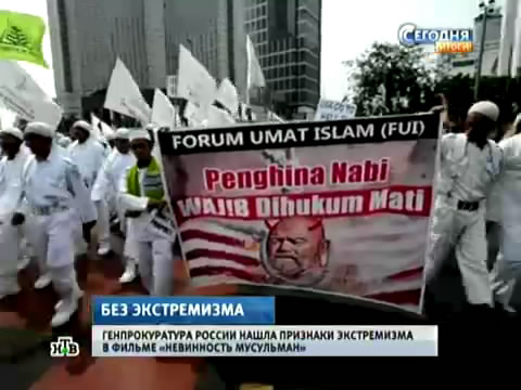 Марина Гриднева, официальный представитель Генпрокуратуры: «По итогам проверки, которую провела Генеральная прокуратура России, подготовлено исковое заявление в суд о признании фильма, который оскорбляет чувства верующих и разжигает межнациональную рознь, экстремистским материалом».И сегодня же страны Евросоюза начали разработку особых мер безопасности по защите своих дипмиссий за рубежом и в первую очередь в исламских странах. Акции протеста уже перекинулись и на саму Европу. Массовые выступления мусульман прошли в Бельгии, Франции и Великобритании. В Антверпене стихийная манифестация обернулась серьезными уличными столкновениями, в результате которых были задержаны сотни человек.