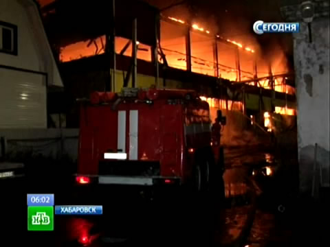 Пожарные Хабаровска пытаются справиться с крупным пожаром на складе с парфюмерией. Здание вспыхнуло как пороховая бочка.