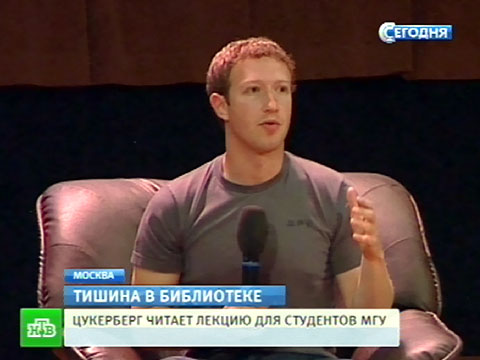 В актовом зале Фундаментальной библиотеки МГУ основатель Facebook Марк Цукерберг встретился со своей целевой аудиторией — студентами. На лекцию Цукерберга записались несколько тысяч человек, но попасть смогли не все.