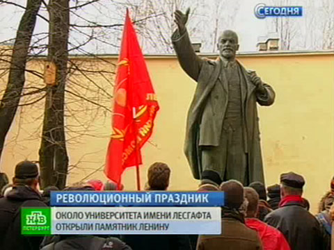В Петербурге открыли памятник Ленину. Прежде монумент стоял на Варшавском вокзале, но после ликвидации транспортного узла оказался не нужен. Как сообщает НТВ, теперь Ильич обрел новое место прописки — университет физкультуры и спорта имени Лесгафта. В этом здании советский вождь