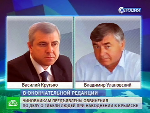 Из сообщения СК РФ: «Предъявлено обвинение в окончательной редакции бывшему главе муниципального образования Крымский район Василию Крутько, главе Крымского городского поселения Владимиру Улановскому, бывшему главе Нижнебаканского сельского поселения МО Крымский район Ирине Рябченко, и. о. руководителя МКУ „Управление по предупреждению чрезвычайных ситуаций и гражданской защиты муниципального образования Крымский район“ Виктору Жданову. Крутько, Улановский и Рябченко обвиняются в служебном подлоге и халатности, Жданов — в халатности и покушении на мошенничество».Как полагает следствие, обвиняемые не предупредили вовремя людей о предстоящем наводнении и не эвакуировали их в безопасное место, в результате чего погибли 153 человека и исчезновению еще двоих. Не предприняли они мер и по предотвращению ЧП. Документы о принятии необходимых мер чиновники подписали «задним числом». А Жданов, кроме того, еще и умудрился вписать свой дом в список поврежденных строений, владельцам которых полагалась компенсация в 50 тысяч рублей.Крутько, Улановский и Жданов на время расследования заключены под стражу. Рядченко находится под подпиской о невыезде.