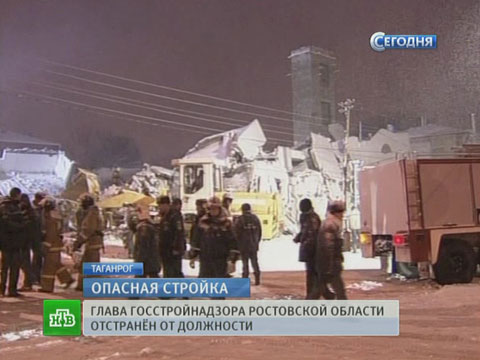 Сегодня губернатор Ростовской области Василий Голубев уволил главу ростовской службы Госстройнадзора. Такое решение было принято после трагедии, произошедшей накануне в Таганроге. Там обрушился почти достроенный многоквартирный дом, под завалами которого оказалась бригада рабочих. Пять человек погибли, 14 получили ранения.